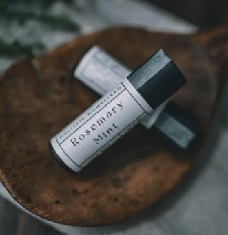 Rosemary Mint Ingredients = Sunflower Oil*, Sweet Almond Oil*, Mint Leaf*, Beeswax*, Shea Butter*, Castor Oil*, Vit E oil*, Essential Oils of Rosemary & Peppermint.  *Organic